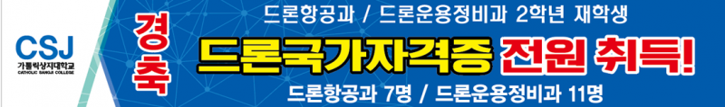 | 4 | 24 재학생 17명 합격!!! 드론 자격증 전원 취득! | 드론운용정비과 | 2025/08/26 | 140 |